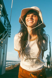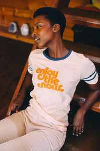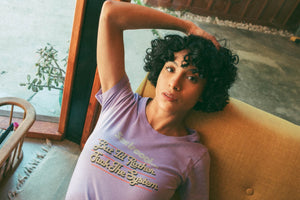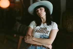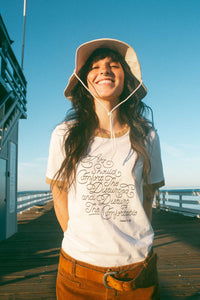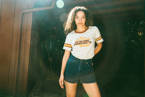 Our t-shirts are made at a sustainable factory in Peru where more than 70% of the workers are women. The factory offers fair pay, fair hours, and profit sharing, and they give back to their community.