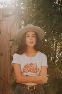 Woman sat on bed in Mama Tried Scoop Neck Shirt for Women by The Bee and The Fox
