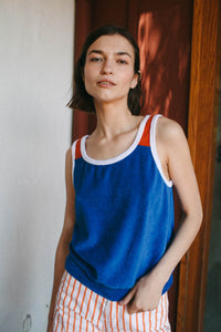 Our terrycloth tank nods to vintage resort wear with soft texture and effortless drape. Unisex, easy, and designed for all your summer plans.