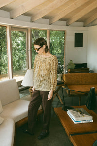 A timeless peasant blouse with voluminous sleeves and a softly gathered neckline. Made for barefoot mornings, favorite record spinning, and dancing in kitchen light.